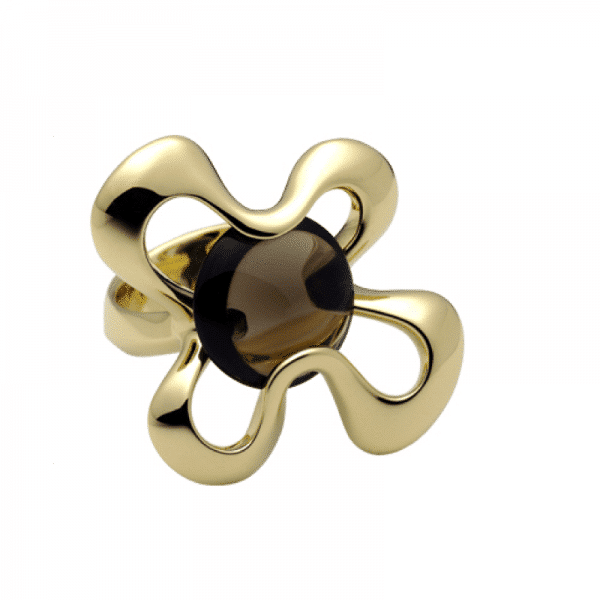 Bague en or jaune 18 carats et quartz fumé de la COLLECTION POEMA, en forme de vagues organiques.