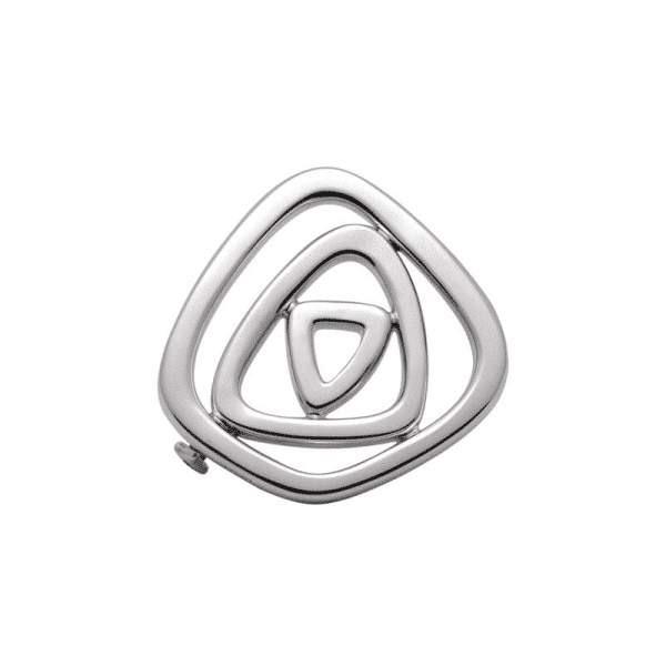 オーバルコレクションのシルバーローブローチ、4cm。幾何学的なピースが非対称に配置されています。
