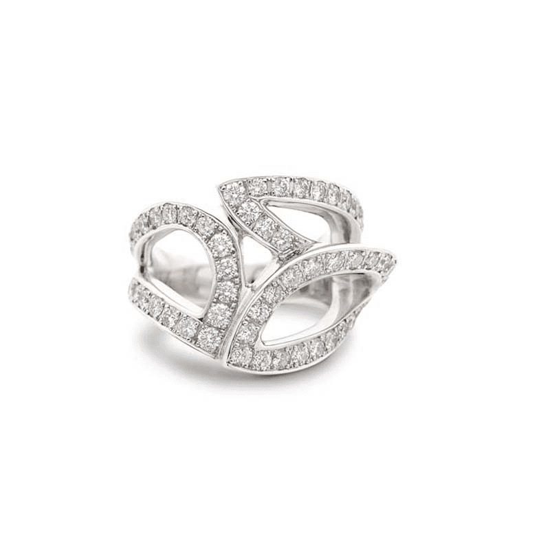 Anillo de Oro Blanco de 18 quilates y diamantes de la COLECCIÓN CABUR, en forma de hojas superpuestas, de diamantes blancos en talla brillante de 2,04 cts. Todas las joyas de JOAQUIN BERAO se elaboran de manera artesanal en nuestros talleres de Madrid.