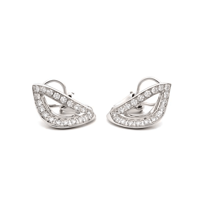 Pendientes de Oro Blanco de 18 quilates y diamantes de la COLECCIÓN CABUR, en forma de hoja de diamantes blancos talla brillante de 1,44 cts y con sistema de cierre omega. Todas las joyas de JOAQUIN BERAO se elaboran de manera artesanal en nuestros talleres de Madrid.